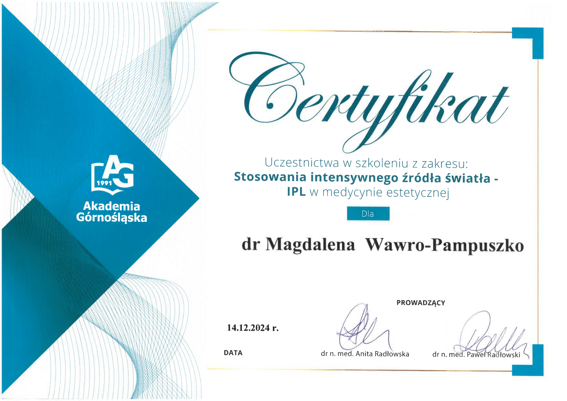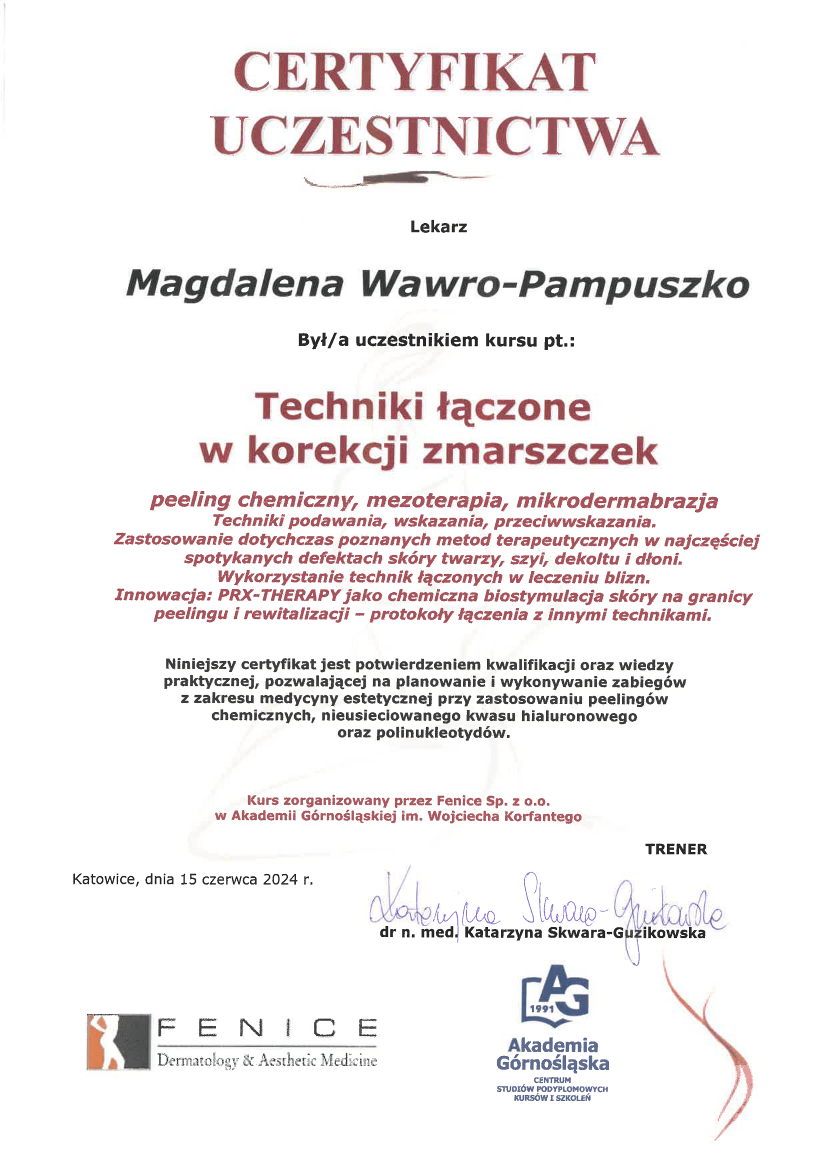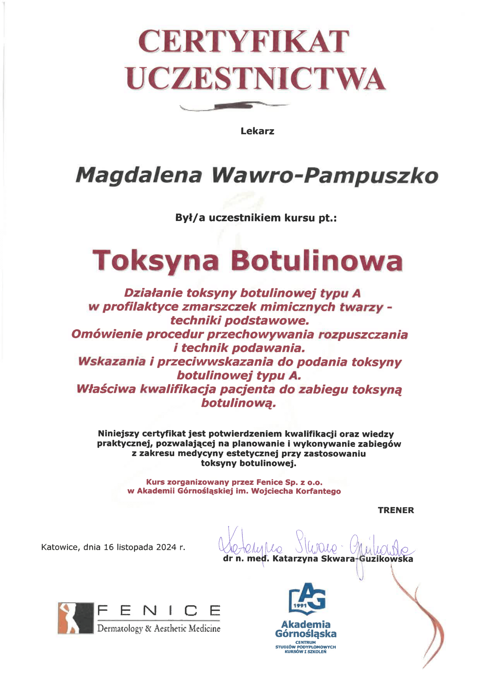 Tak wszystkie są poprzedzone konsultacją lekarską, a wykonywane przez specjalistę, z użyciem certyfikowanych preparatów i nowoczesnego sprzętu.