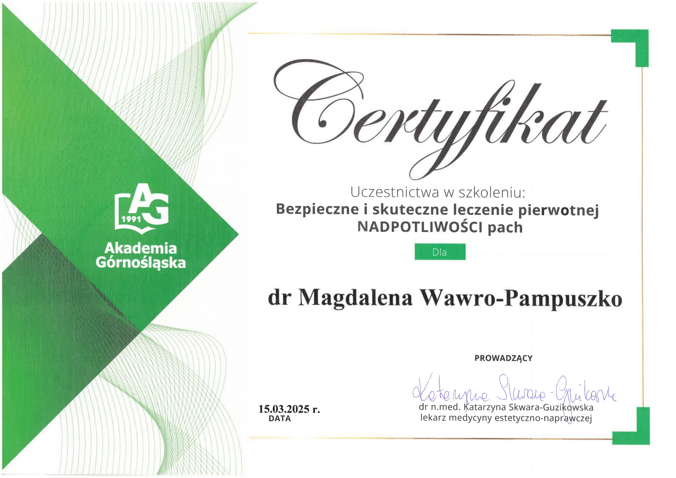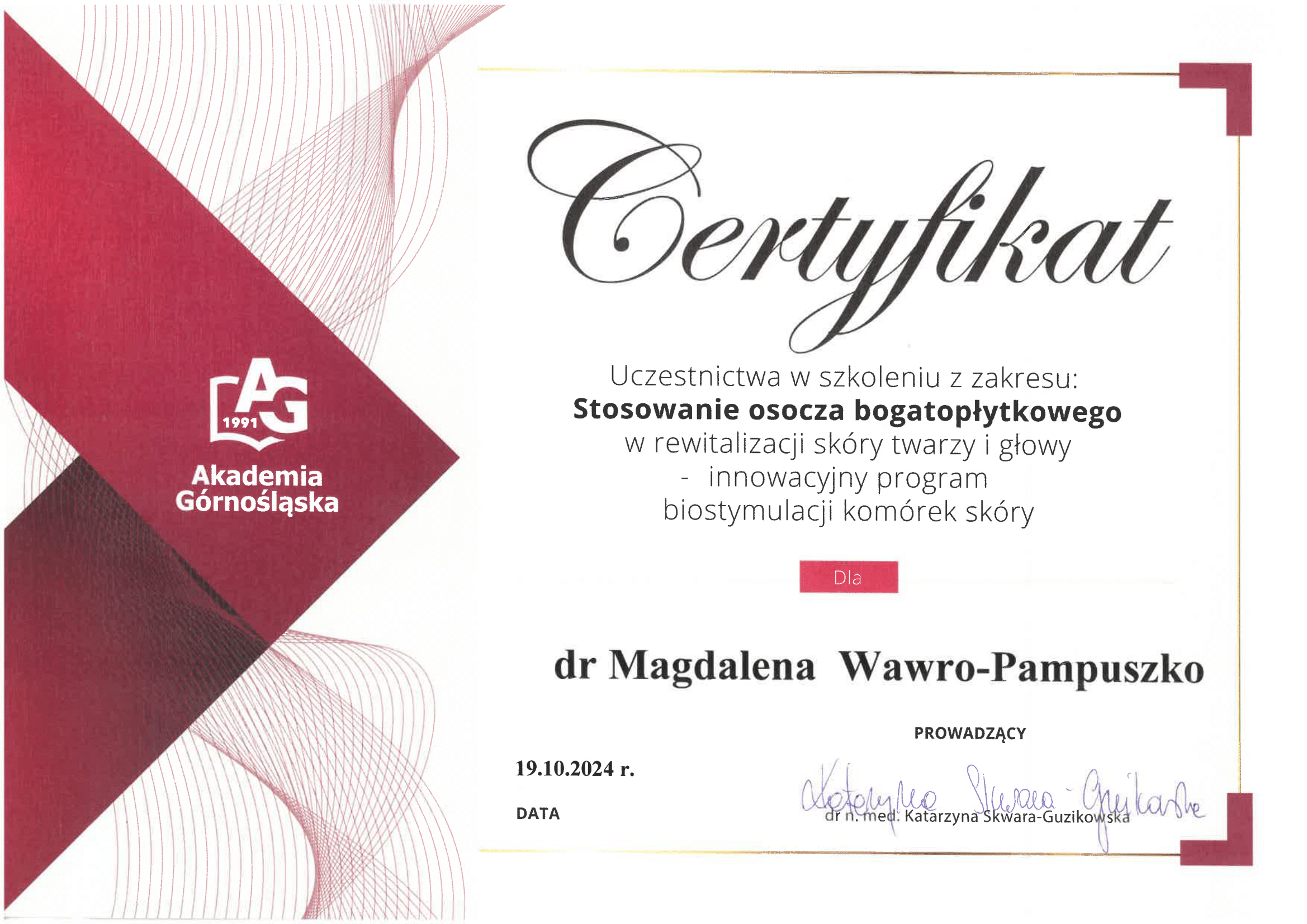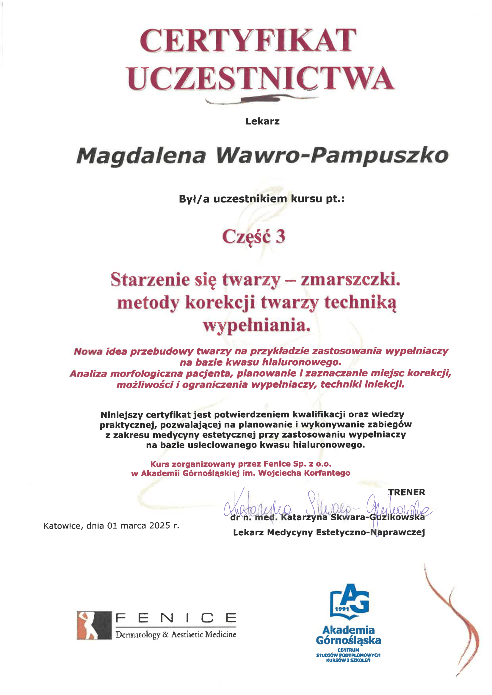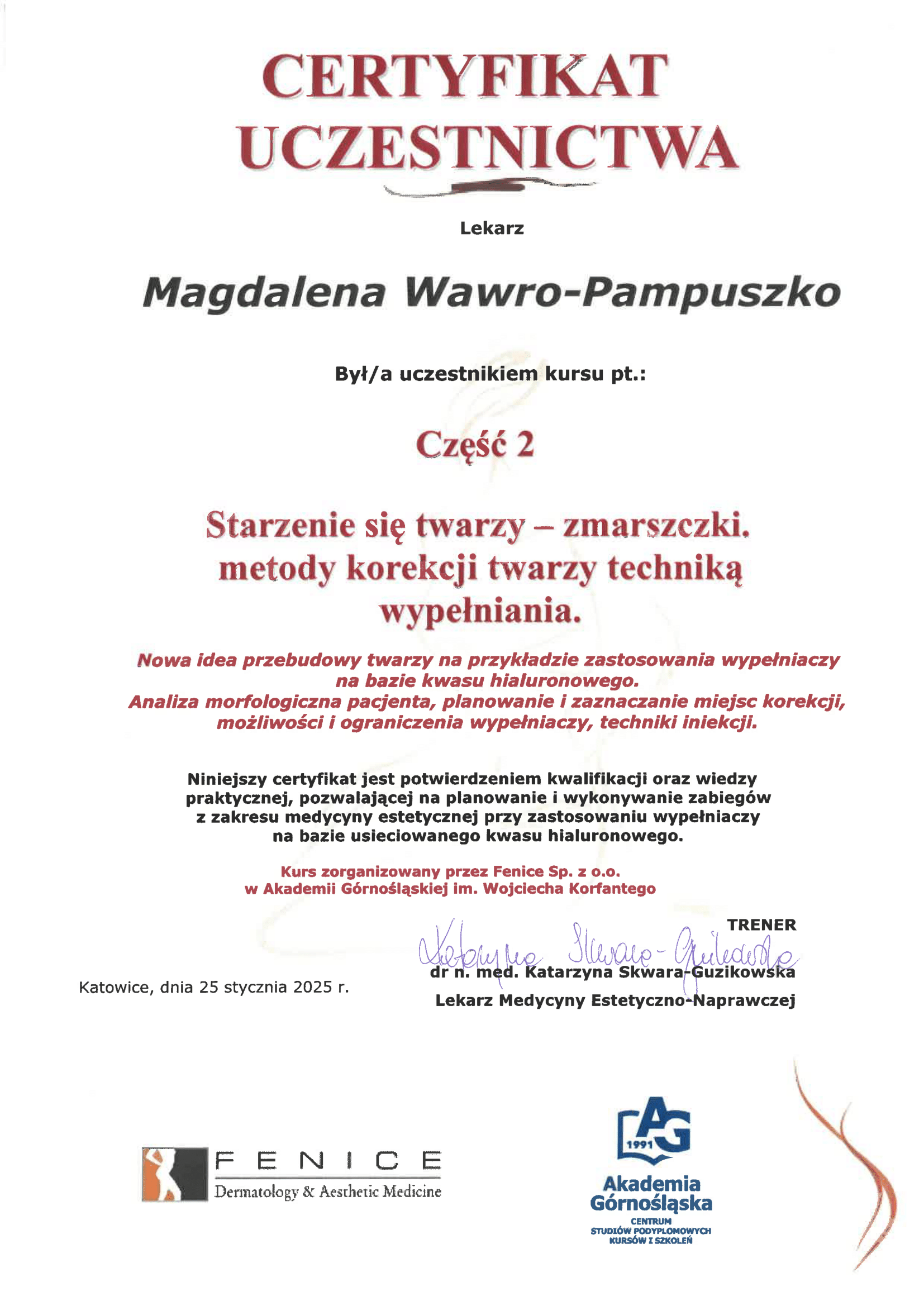 Zabiegi przeprowadza lekarz stomatolog, który ukończył studia podyplomowe z medycyny estetycznej dla lekarzy.